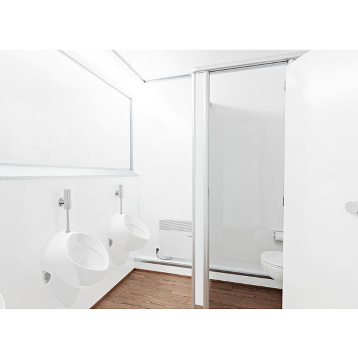 Moška stran: 1x stranišče; 3x pisoar (brez vode), 1x stranišče, 1x umivalnik