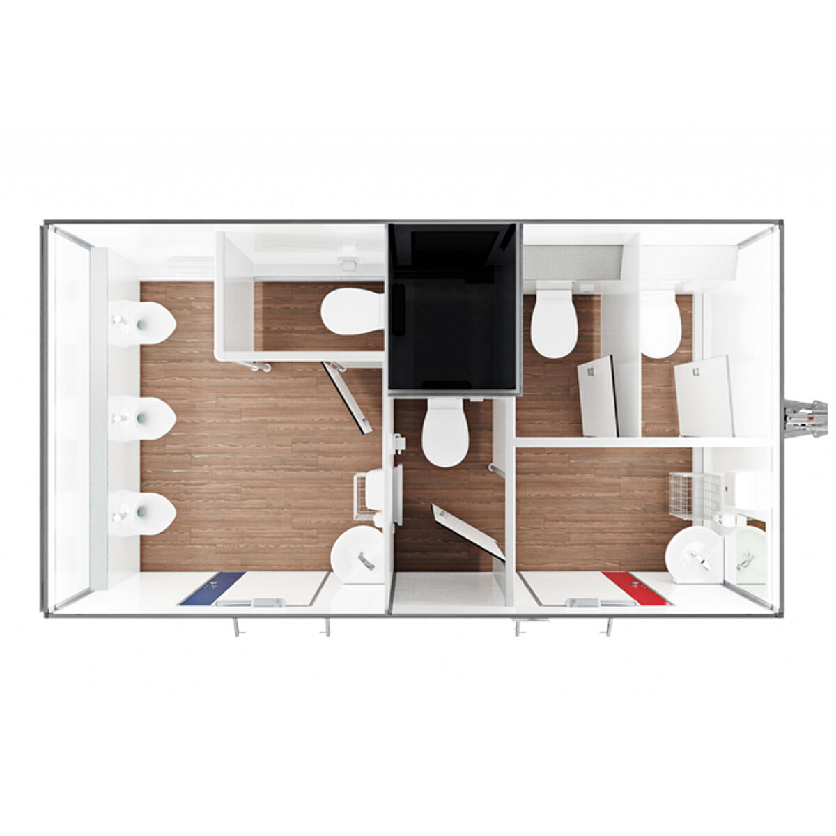 Storitve, ki jih potrebujete, vam nudimo na kraju samem. Cena najema vključuje tedensko čiščenje, polnjenje potrošnega materiala in končno čiščenje. Uporablja se samo okolju prijazen sanitarni koncentrat. Na zahtevo so možni tudi individualno dogovorjeni intervali čiščenja. Naše usposobljeno strokovno osebje dela v skladu z jasno opredeljenimi specifikacijami; redni notranji pregledi zagotavljajo stalno visoke standarde kakovosti.