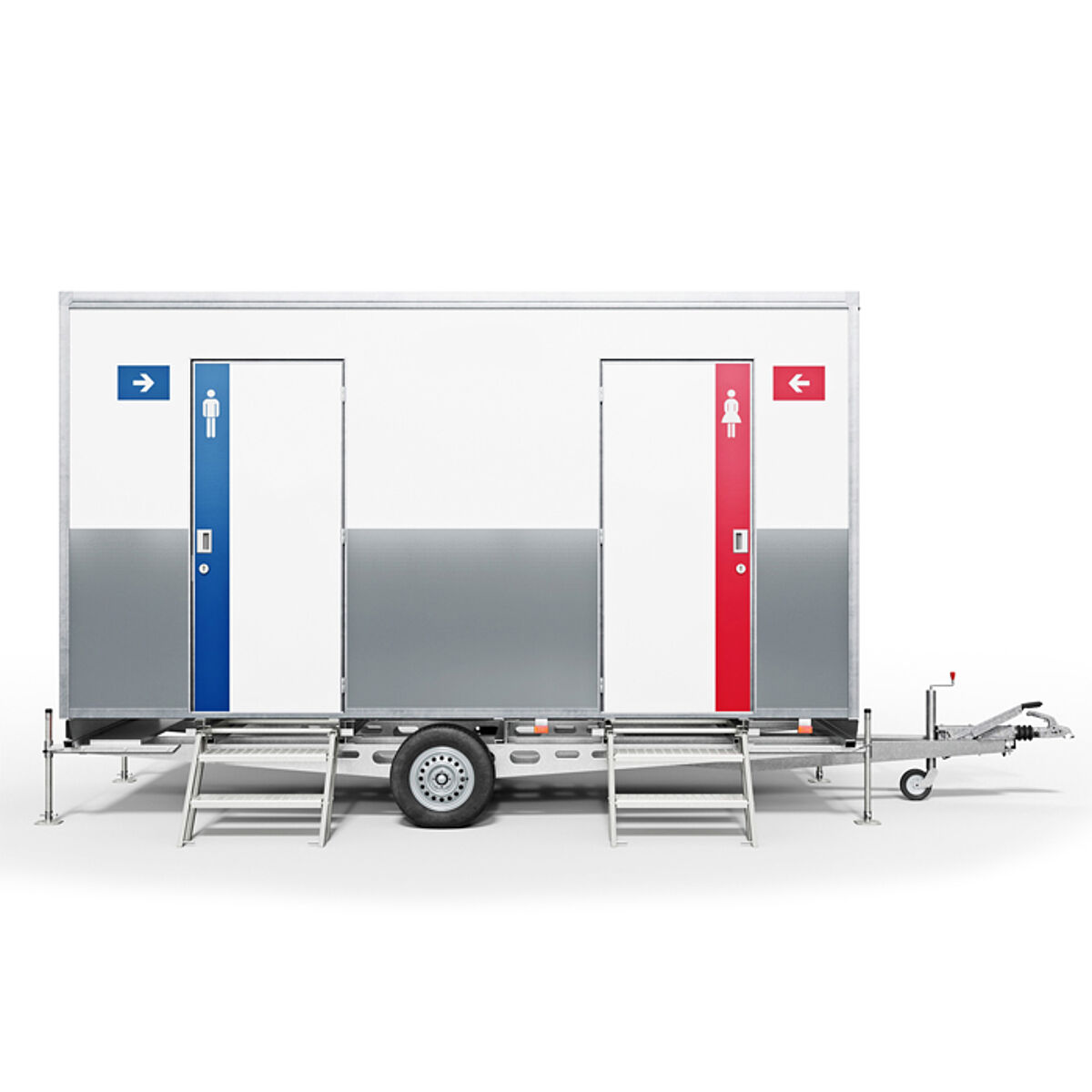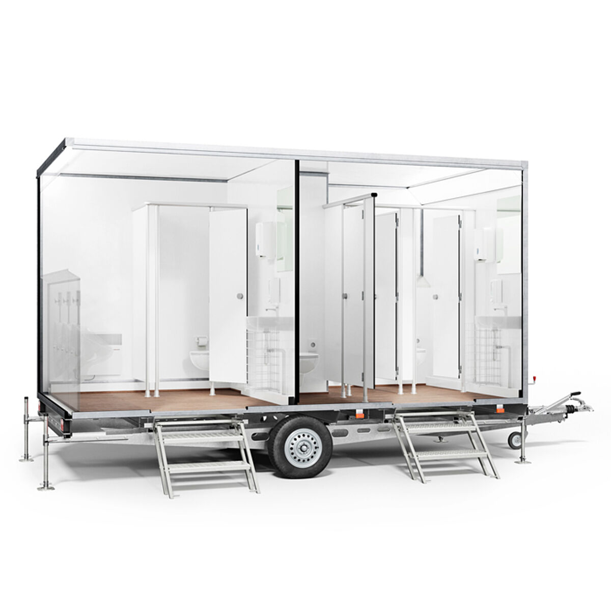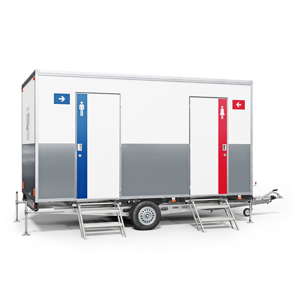 Vakumska (sesalna) stranišča z zelo majhno porabo vode. Prikolica ima integrirane rezervoarje za čisto in odpadno vodo, zato je primerna za postavitev tam kjer ni možnosti priključitve na vodo in kanalizacijo vendar mora biti zaradi vakumskega sistem priključena na elektriko.